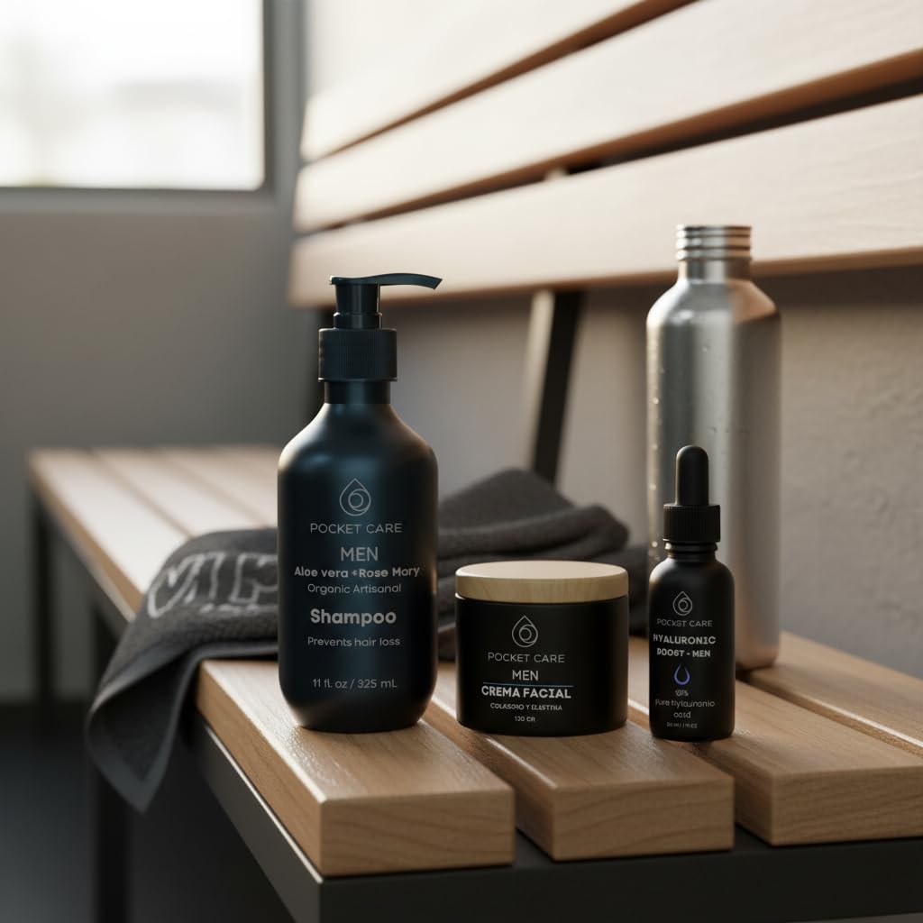 Disfruta una rutina completa de cuidado diario con la Rutina Esencial 3-en-1 de Pocket Care: champú fortalecedor con aloe vera, crema anti-edad con colágeno y sérum hidratante con ácido hialurónico. Fórmulas orgánicas, seguras y eficaces para una piel firme y un cabello más fuerte desde el primer uso.