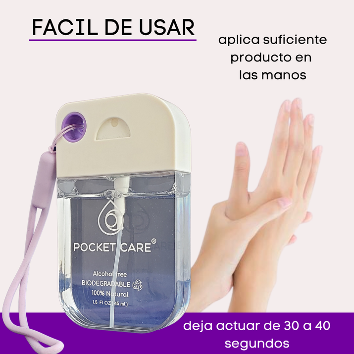 Pocket Care | KIT Desinfectante Spray - Sin Alcohol | 45ml - NEUTRO | Antibacterial Spray de Bolsillo Orgánico + REFILL 200ml | Sanitizante para Manos | Hand Sanitizer 100% Natural